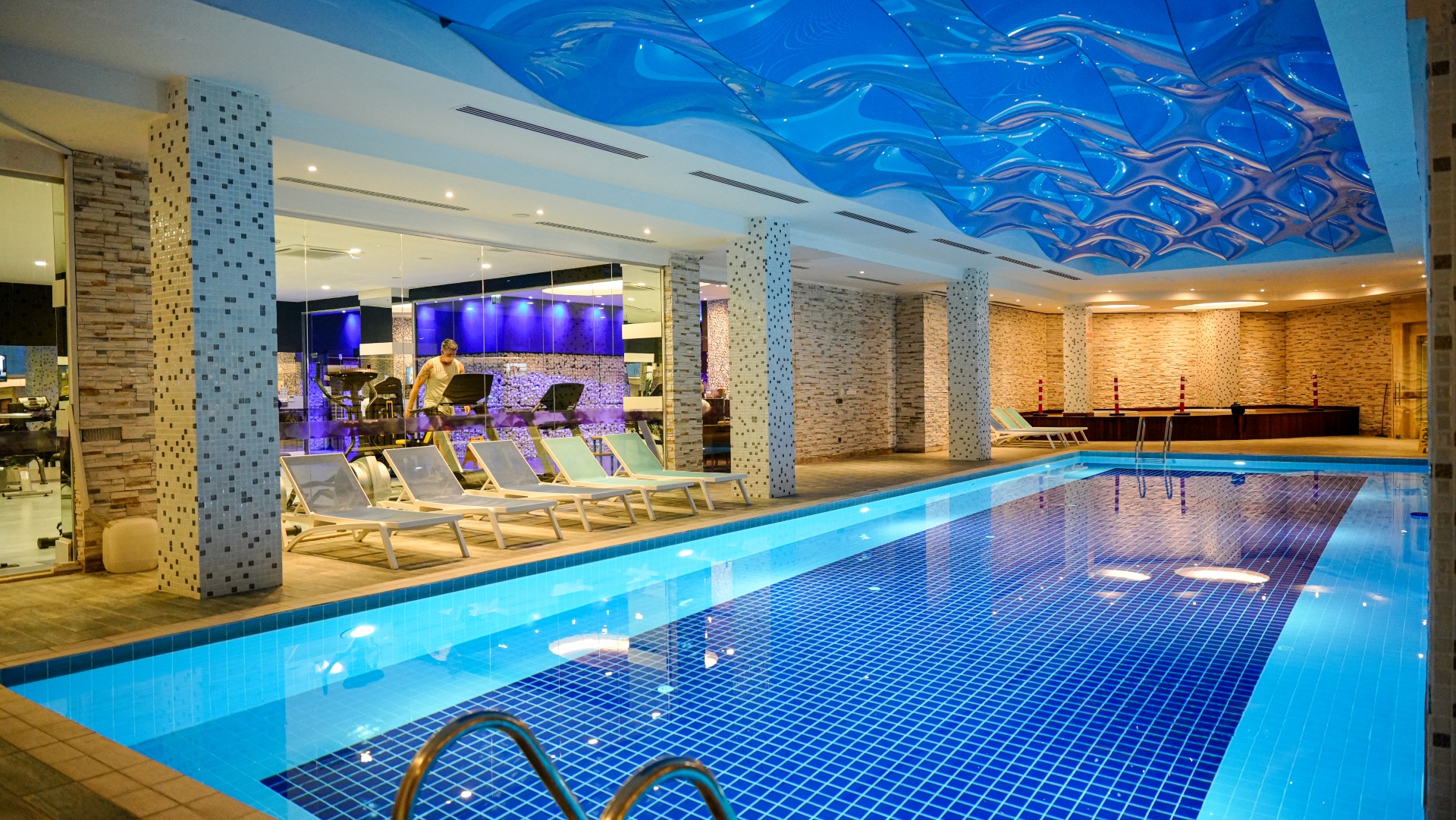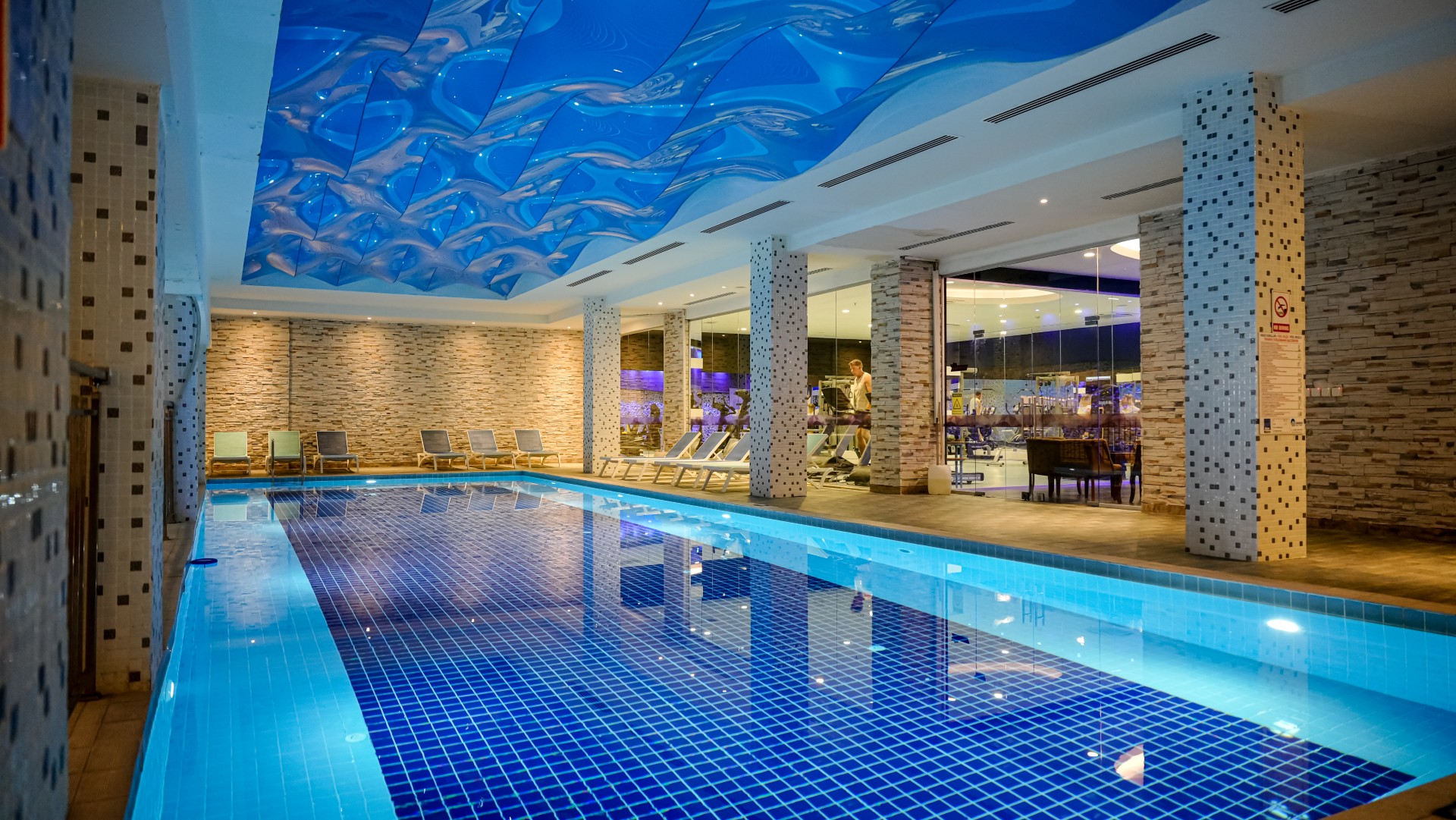 Mary Hotels Alanya’nın zarif ve huzurlu atmosferine sahip kapalı havuzu, dört mevsim yüzme keyfini konforla buluşturuyor. Dinlenmek ve rahatlamak isteyen misafirlerimiz için sakin bir kaçış noktası sunuyor.